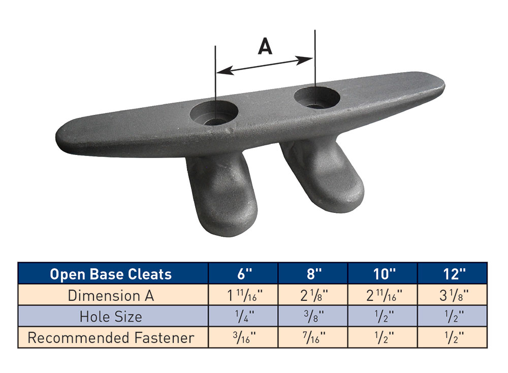 Dock Edge Aluminum Open Base Cleats