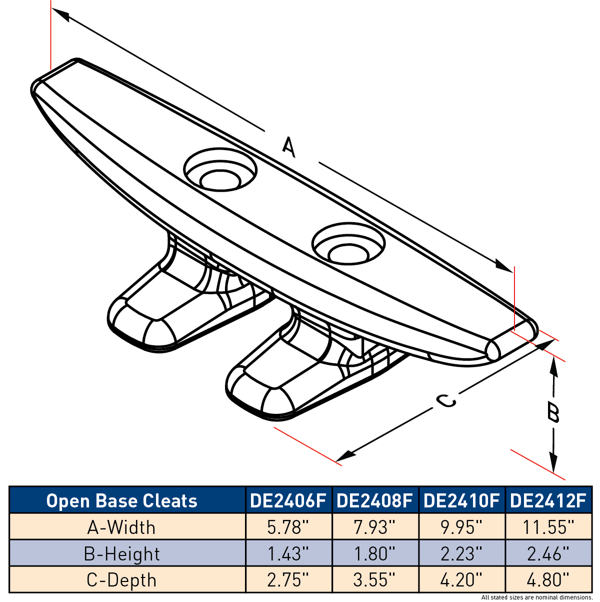 Dock Edge Aluminum Open Base Cleats - (4 sizes)