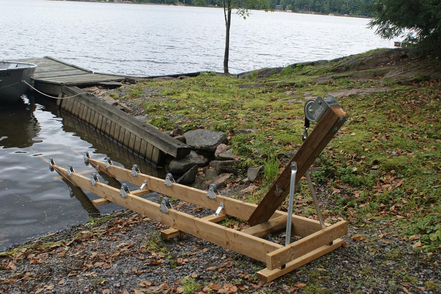 This Dock Edge+ Watercraft Ramp Kit is specifically designed for boats weighing up to 1200 pounds and personal watercraft, taking into account the weight of the watercraft, motor, fuel, and any gear onboard. It features aluminum hardware, polyurethane rollers, and a heavy-duty pulling winch.