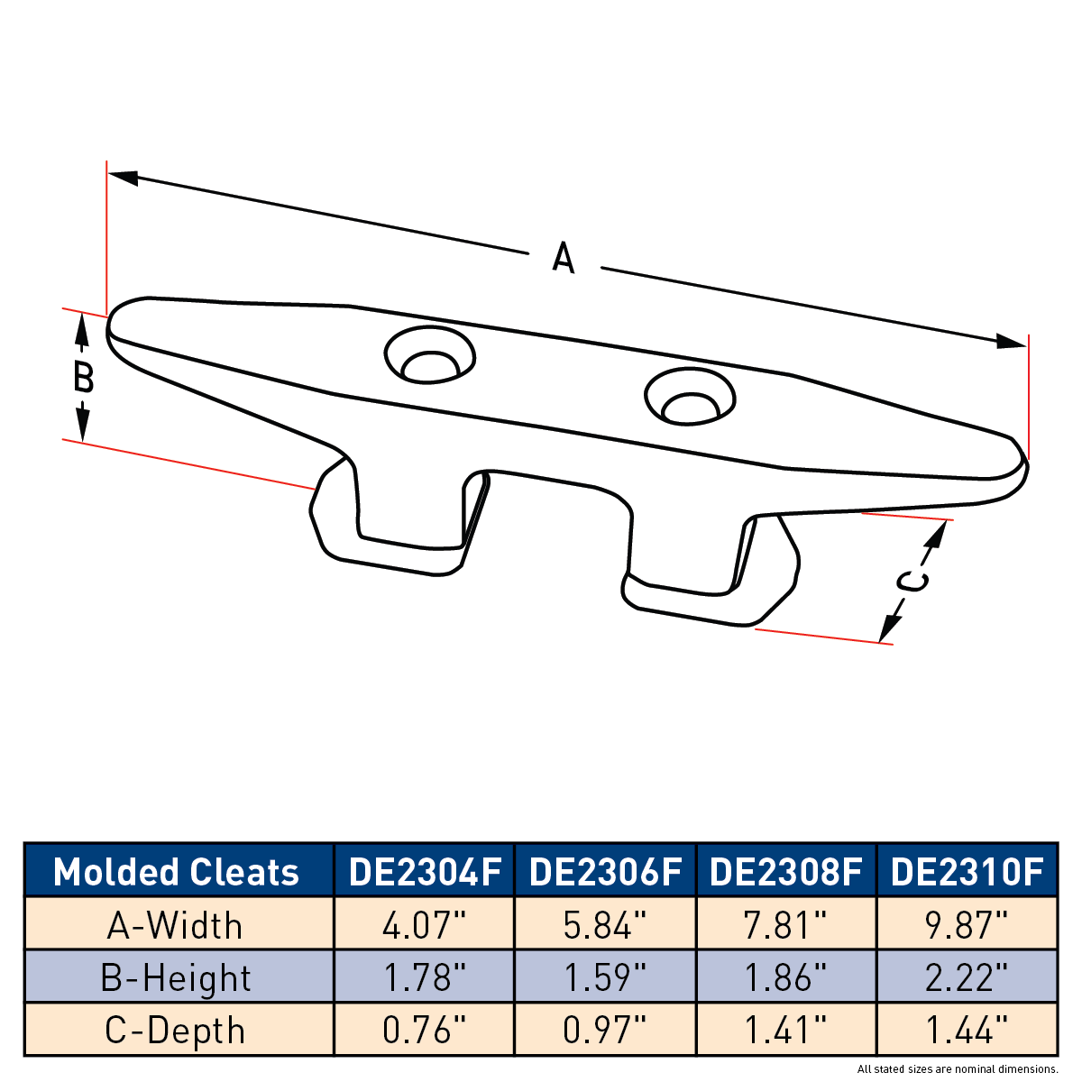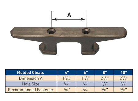 Dock Edge molded cleats are made from Injection molded high density polyethylene with U.V. stabilizers. Attractive, functional, durable and will not chip or crack. 4 sizes available.