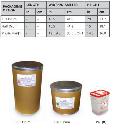 Packaging: Pails, Full and Half Drums