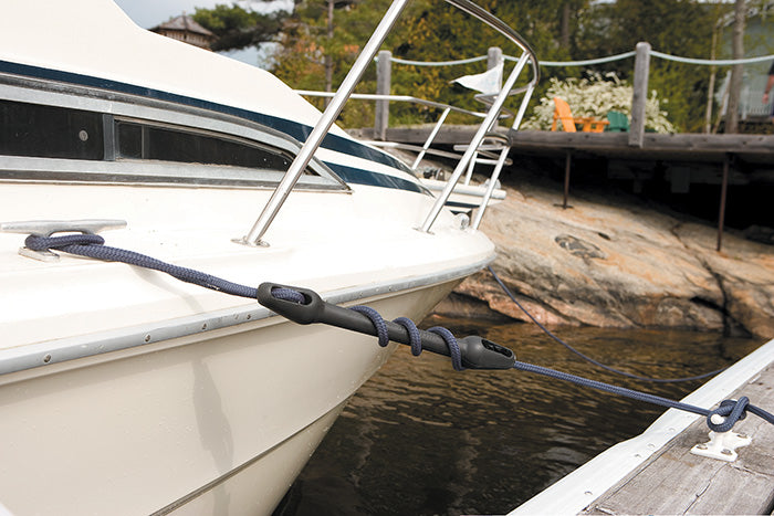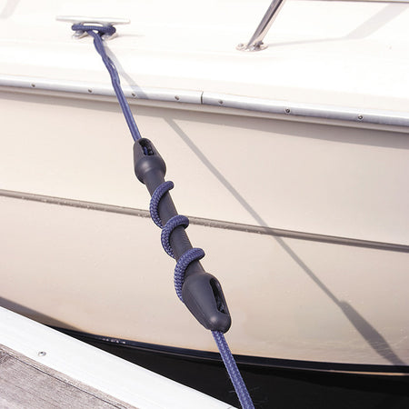 Ideal for both motor and sailing boats. The forces the line is exposed to, are taken up by the elongation of the mooring snubber, reducing the load on the line as well as the boat's hardware.