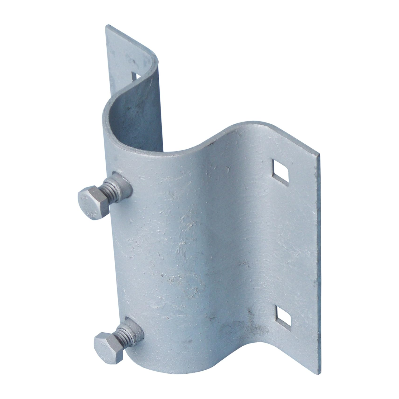 Dock Edge DE86101F side leg holder can be mounted inside or outside of the dock frame. Designed to be used with 1-7/8: (O.D.) pipe. Use with 2 x DE87122F backer plates.