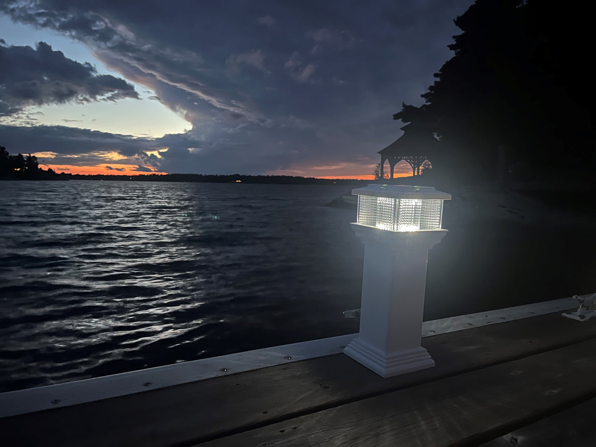 Not only attractive but also adds value and function to your dock or deck areas. Each incorporates stylish, durable solar lighting in an attractive colonial housing. Conveniently mounts easily to conventional 4″ x 4″ wooden posts so you can put them wherever you already have a post or wish to put one.
